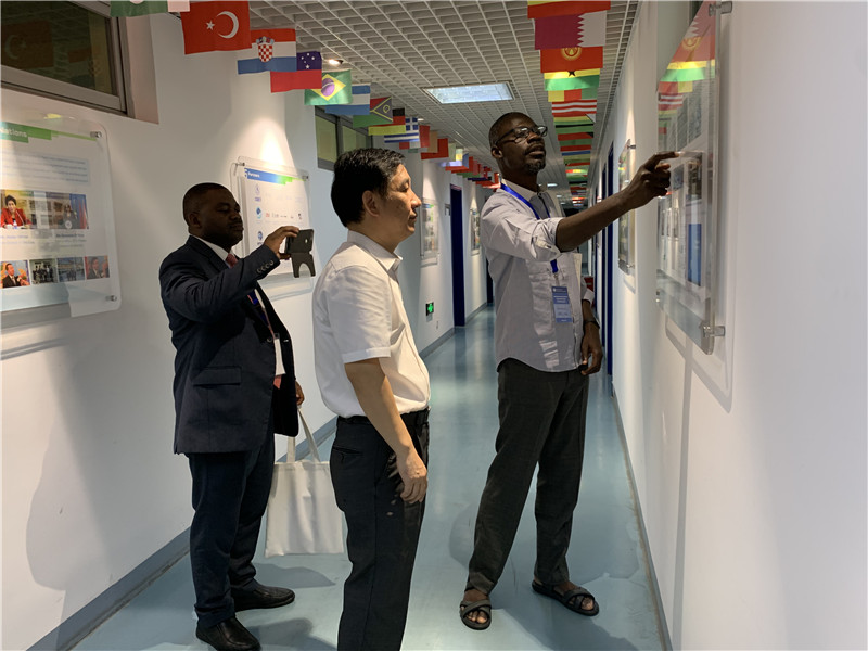 会后,Halilu Ahmad Shaba和Godstime James博士参观了小卫星地面测控中心、远程教学与视频会议室、遥感与地理信息系统教学实验室、区域中心档案和图书馆、培训教室、中心建设发展画廊、工作通讯及出版物陈列橱窗、学员档案书架、学员毕业论文书架等。