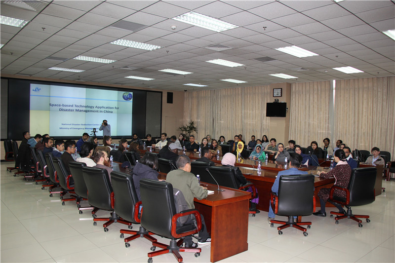 中心卫星遥感部副主任李素菊研究员、刘明博士、胡凯龙博士等热情接待了学员一行。首先,刘明博士为学员作了题为“空间技术在减灾领域的应用”的讲座,从中国灾害的特点和管理方法、空间技术在灾害监测和评估中的应用等方面,具体介绍了灾害管理系统、遥感数据获取能力、常规灾害监测和管理。随后,学员们参观了减灾中心航空遥感业务区、卫星遥感业务区、信息管理与服务业务区、灾害评估业务区、综合研判业务区等工作区域。中心的专业技术老师为学员们详细介绍并演示了如何利用国家自然灾害灾情报送系统、无人机遥感灾害应急合作机制等渠道,获取所需数据和图像信息。
