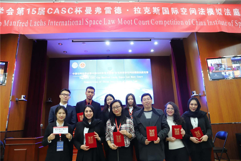 2018年12月21日-22日,由中国空间法学会主办的“中国空间法学会第15届CASC杯国际空间法模拟法庭竞赛”(The 15th CASC Cup Manfred Lachs Space Law Moot Court Competition of China Institute of Space Law)在北京理工大学举行。比赛由中心空间法律与政策方向责任专家高国柱和学员导师高琦全程指导。中心学员SURUCCHAWADI SEWEEWANLOP、AISHIN BARABI和ANA PAULA CASTRO DE PAULA NUNES组队参赛并获团体三等奖,SURUCCHAWADI SEWEEWANLOP、AISHIN BARABI获优秀辩手奖,指导老师高琦、高国柱获得“最佳组织奖”。