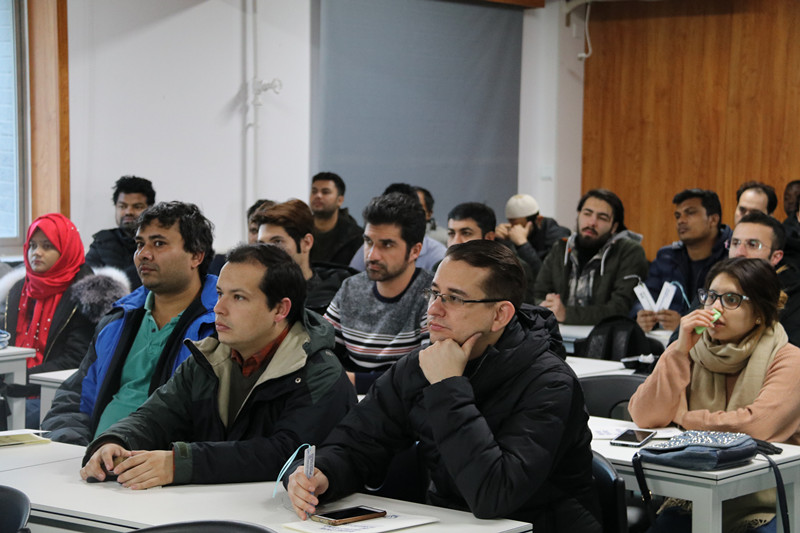 最后,吴坷老师就学生活动纪律、中心网站建设、寒假注意事项等进行了讲解,并组织学生代表对本学期参与的中心特色活动进行了汇报展示。来自巴基斯坦的MUHAMMAD ARSALAN、孟加拉的SM SUJAUDDIN PATHAN SHIBLEE和委内瑞拉的UZCATEGUI MELEAN ROBERTO JESUS分别作为学生代表就北斗培训班、中心第三次理事会及招待会、参观东高地青少年科技馆等活动进行了展示,介绍了活动的内容和自己参与活动的感想。
