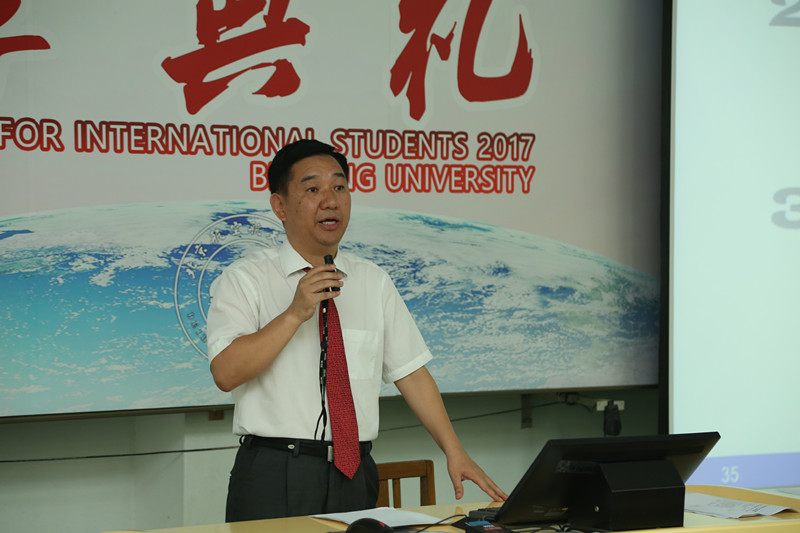 国际学院院长翁敬农向新生介绍了北航及其国际教育情况,并衷心希望同学们敢于创新不畏难、珍惜韶华勇追梦、饮流怀源知感恩,将来能够为国家的建设、为世界的发展贡献出一份力量。