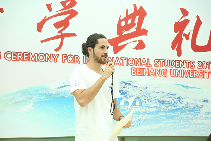 巴西籍硕士研究生路安代表全体新生发言。他表达了对崭新的大学生活的憧憬、刻苦学习的决心和勇攀高峰的信念,并希望成为促进不同文明交流、增进各国人民间友谊的使者,为实现人类的共同发展做出贡献。