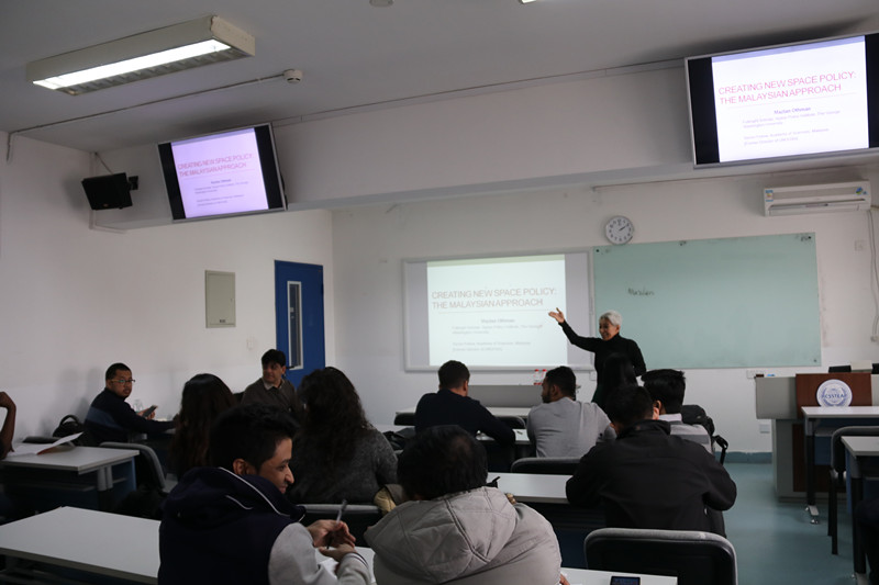 应中心邀请,马来西亚天体物理学家、马来西亚科学院院士、美国乔治华盛顿大学空间法研究所富布莱特学者、联合国外空司前司长Mazlan Othman女士于3月6日至10日到访中心,为学员讲授有关“空间法律与政策热点问题”的讲座,吸引了来自不同学院的中外师生前来聆听。