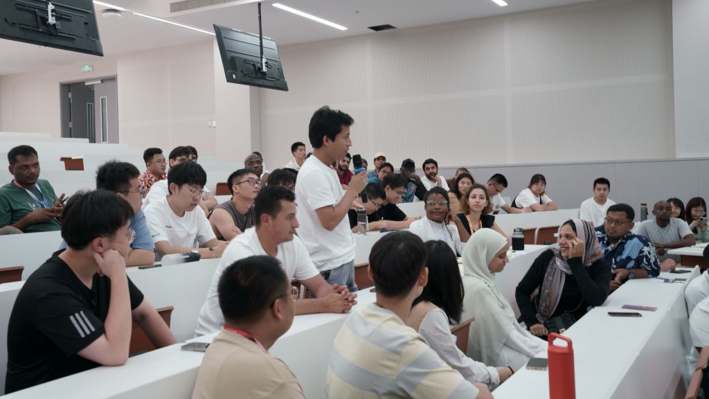 9月3日,2024级国际学生开学典礼暨开学第一课在北京学院路校区学术交流厅隆重举行,中心学员们在杭州国际校园同步观看直播。北航国际合作部部长、区域中心执行主任翁敬农为新生们讲授了“开学第一课”,介绍了北航在人才、教育、科研、国际合作方面取得的辉煌成就,并鼓励新生们在校期间勤奋学习、全面发展。
