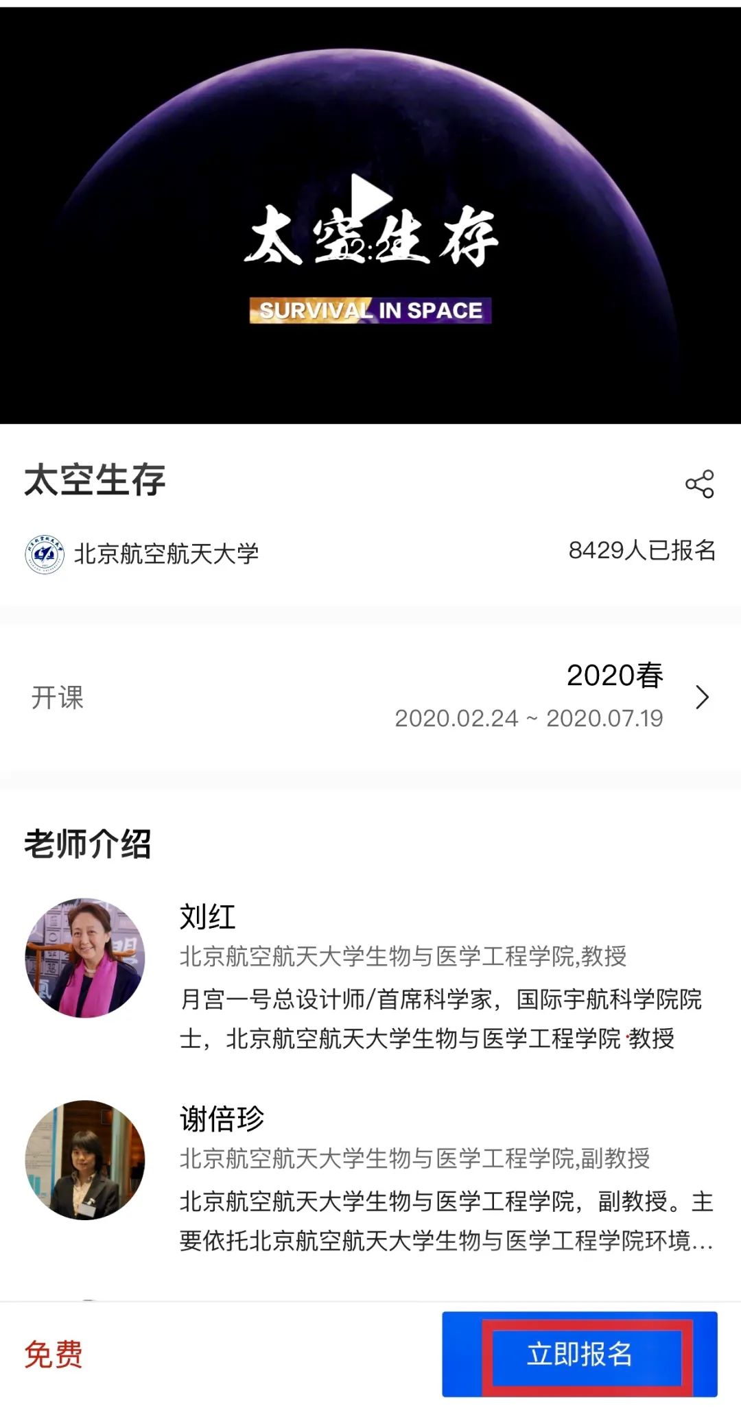 太空中的环境条件十分恶劣,人类如何能在这样的环境下实现长期生存?《太空生存》将为你娓娓道来。本课程由“月宫一号”总设计师、北京伊人99刘红教授领衔,基于团队十五年的研究积累,为同学们讲解人类的太空生存之道。“月宫365”实验舱内实验舰长、北京伊人99刘慧博士与大家分享月宫中的工作和生活。本课程为通识类课程,最后七节是英文版课程。